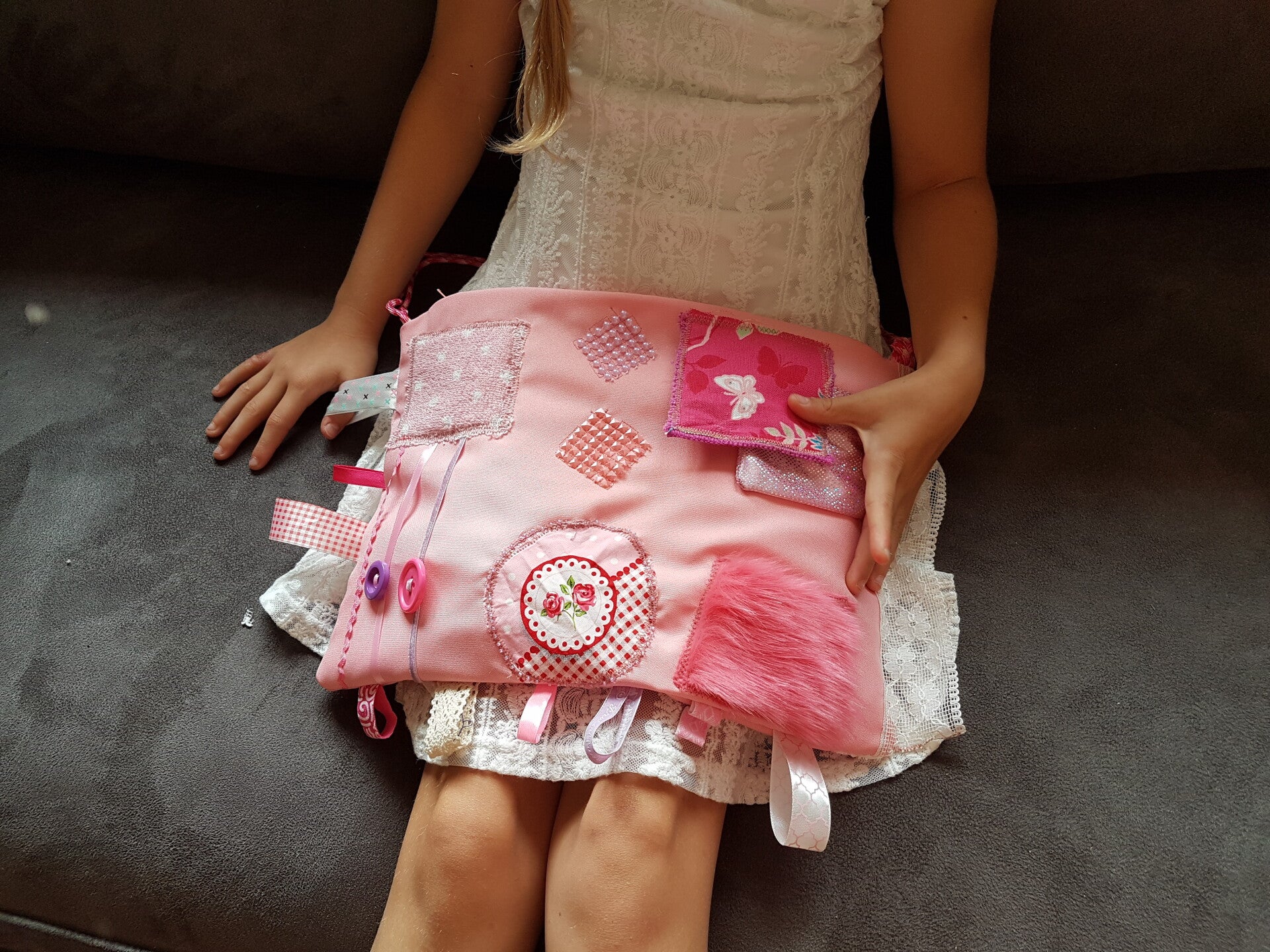 Er zijn al zoveel spullen in deze wereld, en toch zijn mensen op zoek naar iets nieuws. Daarom maak ik iets nieuws van spullen die niet opnieuw gekocht en geproduceerd hoeven te worden, maar met spullen die er al zijn. Duurzaamheid en creativiteit gaan hand in hand. Zo maakte ik toen mijn kinderen klein waren verkleedkleding van lapjes die ik nog had liggen en gaf er met mijn boorduursel en kraaltjes een eigen draai aan. Ook heb ik aardig wat verzwaringsdekens, verzwaringskussens en voeldekens mogen maken. Daar was het juist fijn om veel verschillende materialen te hebben.